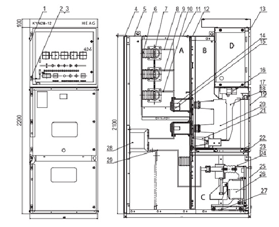 It can be arranged for single busbar, single busbar sectionlizing system or double busbar. It accords with IEC62271-200 AC Metal En closed Switch and Control Equipment above 1kV and below 52kV IEC60694 Standard Common Clauses for HV Switchgear, DIN.